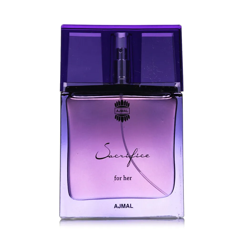 Sacrifice for Her od značky Ajmal je sofistikovaná květinová parfémová voda vytvořená speciálně pro ženy, které si potrpí na eleganci a smyslnost. Tato vůně, která byla představena v roce 2007 jako součást ikonické řady Sacrifice for Her, je poctou ženské síle, ale i jemnosti a oddanosti. Je určena všem dámám, které chtějí podtrhnout svou osobnost a okouzlit okolí jedinečným aromatem, jež propojuje čistotu a hloubku v každé kapce. Sacrifice for Her je květinová kompozice s výraznými pižmovými a sladkými akordy, která zanechává nezapomenutelný dojem.