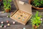 Do této luxusní dárkové sady ukryli v nizozemském Blossombs 9 jílových kuliček se semínky BIO divokého lučního kvítí, třeba vlčí mák, chrpu nebo jetel.