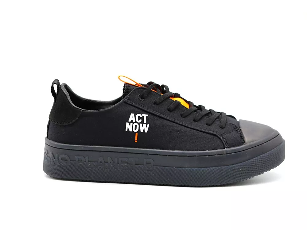 Pokud vám není lhostejná výroba vaší obuvi, sáhněte po černých udržitelných teniskách Ecoalf „ACT NOW“ s cool oranžovými detaily. Hlavním materiálem těchto botiček je 100% recyklovaný nylon a bluesign® certifikovaná látka, u níž je sledována celá cesta výrobního procesu a splňuje maximální kvalitu s minimální spotřebou zdrojů. Jsou veganské a bez PFC chemikálií.