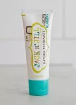 100% přírodní zubní pasta od Jack n' Jill obsahuje příchutě z ovoce v BIO kvalitě a je pro děti zcela bezpečná, pokud ji spolknou. Součástí je i extrakt z BIO měsíčku lékařského pro jemnou péči o dásně.
