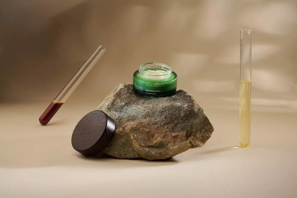 Denní pleťový krém s obsahem CBD z kolekce Solution by Kvitok® díky obsahu klinicky testovaného enkapsulovaného komplexu CBD a extraktu borovice limbové, působí protizánětlivě, sjednocuje tón pleti a aktivuje regeneraci pokožky.