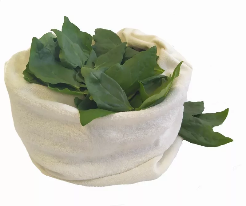 Povadlé salátové listy? Smrsklé mrkvičky? Pórek bez života? Pratelná kapsa z bambusového froté a biobavlny tyto hororové představy zanechá minulosti. Vyšší cenu diktuje právě její unikátní přírodní materiál, který na sebe skvěle váže vodu. Zelenina díky němu zůstane čerstvá mnohem déle, aniž by se zapařovala.