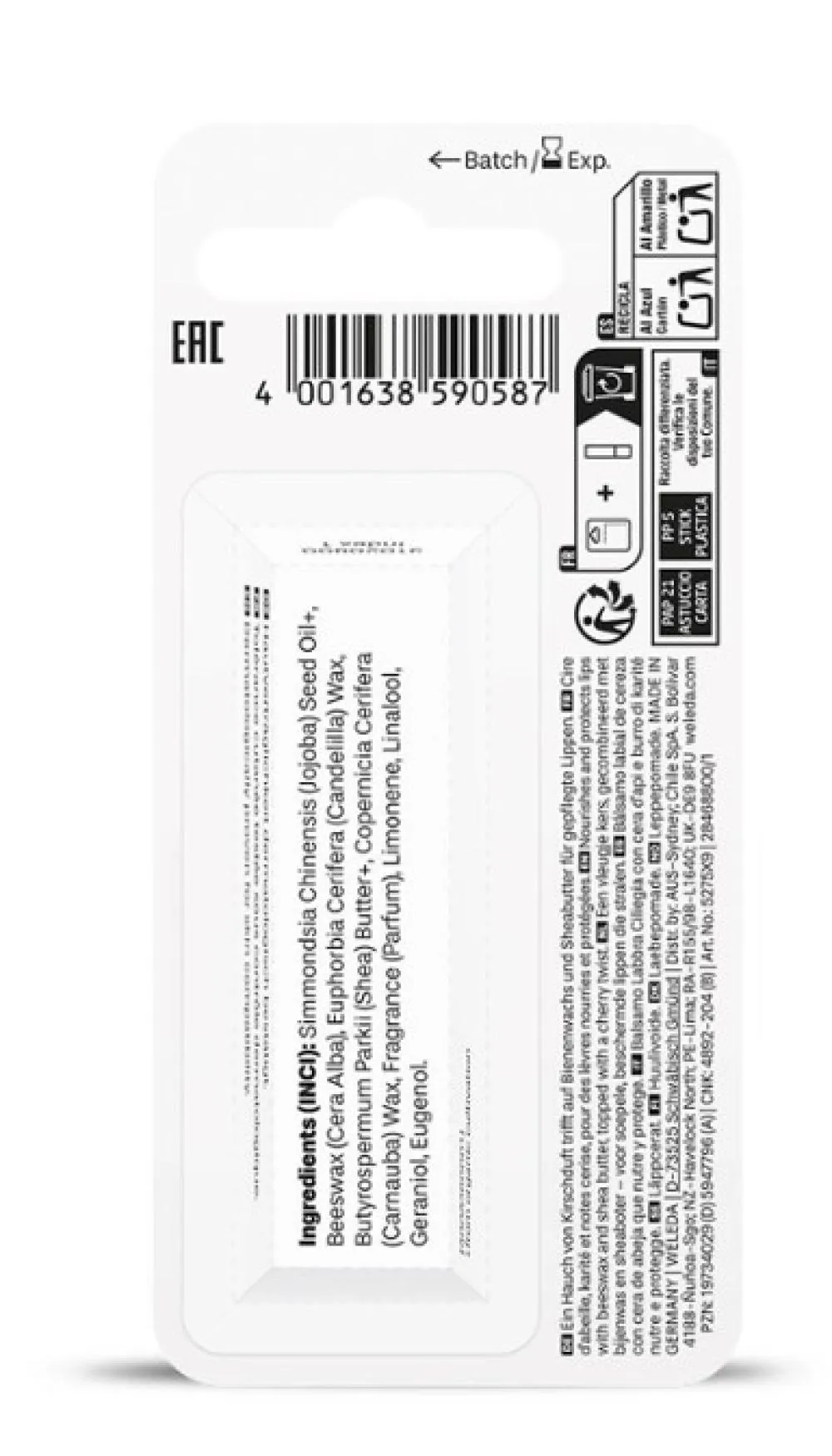 Vyživující balzám na rty s lahodnou třešňovou vůní okamžitě zjemňuje, hydratuje a chrání rty před vysušením i popraskáním. Lehká, balzámová textura se snadno roztírá, nezanechává lepivý pocit a dodá rtům přirozeně hebký, pěstěný vzhled. Přírodní parfemace se šťavnatými třešňovými tóny zpříjemní každodenní péči kdykoli během dne.
